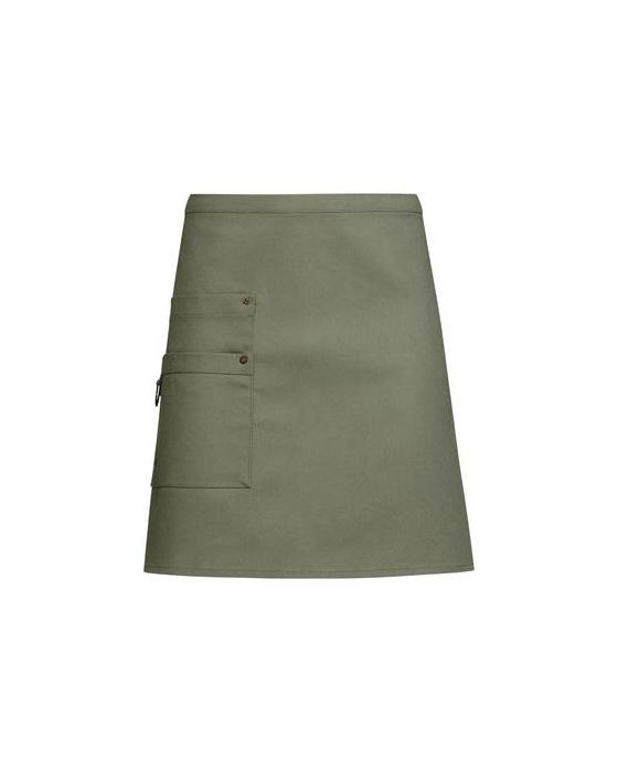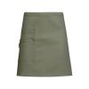 Med sine funktionelle lommer og en justerbar pasform omkring taljen er dette forklæde både praktisk og komfortabelt til lange arbejdsdage. Den oliven grønne farve giver et moderne, professionelt udtryk, og det alsidige design passer perfekt til både front-of-house og back-of-house personale.