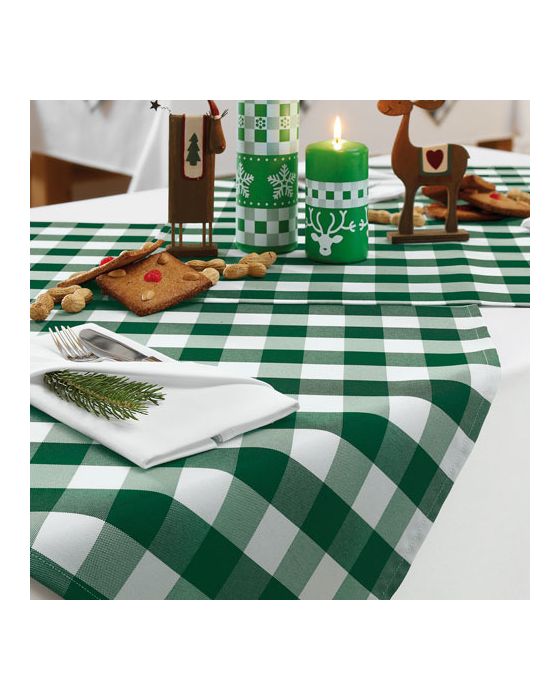 Green and white checkered cloth napkins in 100% polyester are developed for professional needs in hotels, restaurants and cafés. The napkins are durable and can withstand daily use and frequent washing.