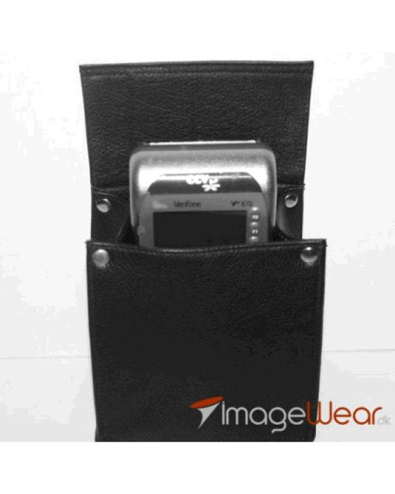 The pouch is made of strong leather with a discreet pebble texture and four metal buttons. The internal dimensions of 13 x 12.5 x 8 cm provide space for most Verifone and Ingenico terminals, so that the equipment is always safely stored but easily accessible.