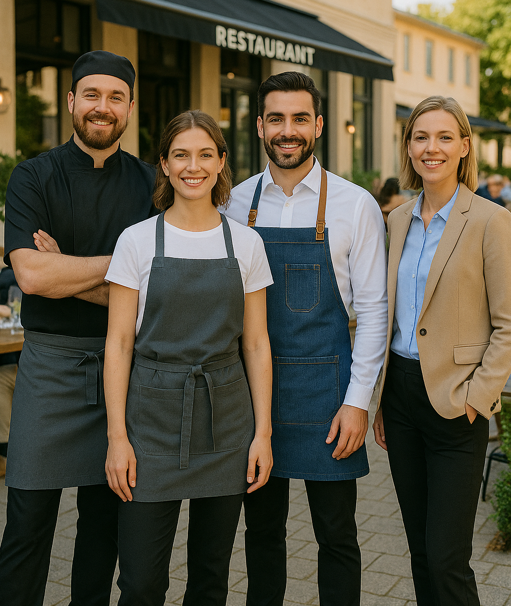Alle løsninger kan tilpasses, så både små teams og større hotel- og restaurantkæder opnår en professionel og sammenhængende uniformsprofil.
