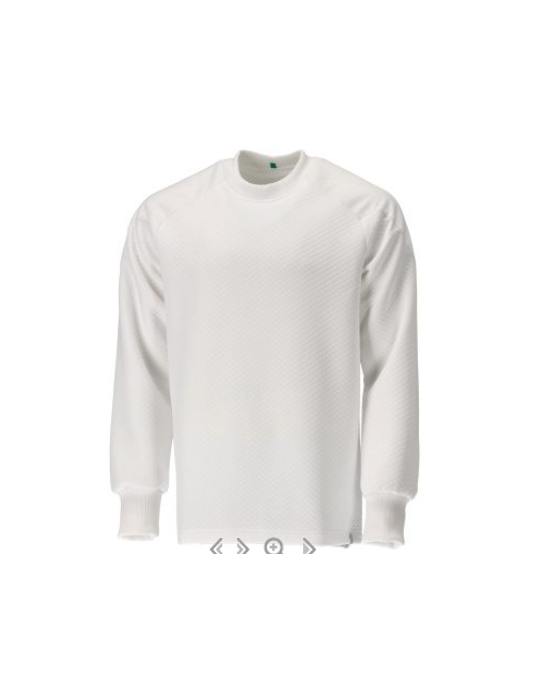 Professionel hvid sweatshirt til housekeeping og serviceopgaver. Robust polyester-yderside giver høj slidstyrke, mens bomuldsindersiden føles behagelig.