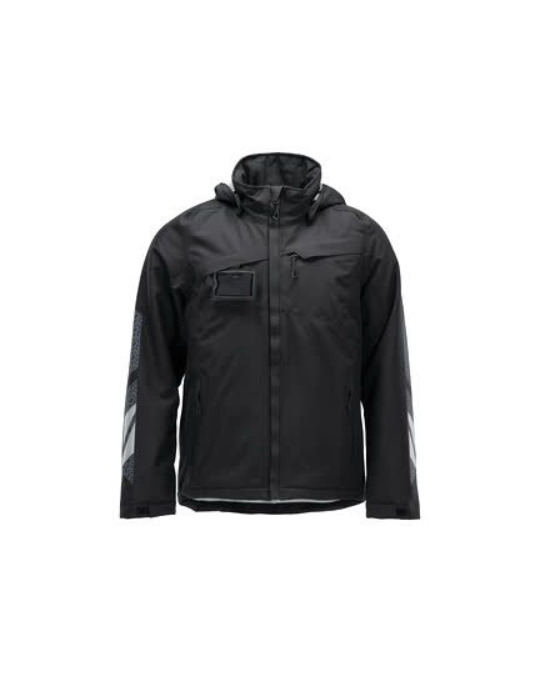 Mascot Accelerate vinterjakke er en robust, funktionel jakke designet til kolde og skiftende vejrforhold. Den tilbyder vind- og vandtæthed med tapede sømme, kombineret med CLIMASCOT®‑isolering, som sikrer effektiv varme uden at øge volumen væsentligt. Jakken har en aftagelig, foret hætte med regulerbar elastiksnøre, dobbelt vindfang samt CORDURA®‑forstærkede ærmer for ekstra slidstyrke. Med justerbar talje og reflekseffekter opnår brugeren både komfort, bevægelsesfrihed og øget synlighed — ideel til krævende arbejdsforhold.