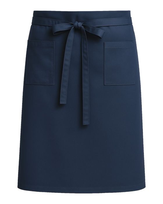 Dette klassiske serviceforklæde er ideelt til professionelle miljøer, hvor både funktion og komfort er afgørende. Forklædet har et kort design med praktisk løbegang, justerbare bindebånd og to rummelige lommer, der gør det nemt at holde styr på redskaber og småting i en travl arbejdsdag. Den robuste konstruktion sikrer holdbarhed, og det enkle snit passer perfekt til hotel-, restaurant- og cateringmiljøer. Den klassiske navyfarve giver et stilrent udtryk og gør forklædet velegnet til industrivask.