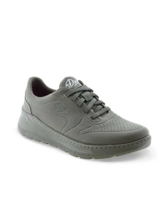 Dian Duna i farven kaki er en moderne arbejdssko, der kombinerer teknisk funktion med hverdagskomfort. Skoen er udstyret med en fleksibel overdel i D’COVER® mikrofiber, som både er åndbar og nem at holde ren. Den elastiske snørelukning sikrer en god pasform uden at gå på kompromis med bevægelsesfriheden. Indvendigt er skoen foret med D’DRY® tekstil, der effektivt transporterer fugt væk fra foden, mens indlægssålen i D’WALK® skum giver støddæmpning og støtte. Den lette og skridsikre D’LIGHT® ydersål fuldender skoens ergonomiske og sikre design, der tåler industrivask.