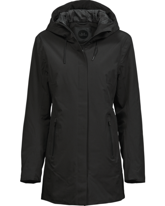 Tee Jays Women's All Weather Parka er en funktionel og moderne damejakke, skabt til at modstå vind og vejr i et travlt arbejdsmiljø. Med sit feminine snit, tapede sømme og justerbar hætte er jakken ideel til udendørs arbejdsopgaver, hvor både komfort og funktionalitet er vigtige. Den vind- og vandafvisende overflade kombineret med praktiske detaljer som brystlomme med vandtæt lynlås og justerbare manchetter gør den til et oplagt valg for professionelle i hotel-, service- og rejsebranchen, der har brug for en arbejdsjakke til kvinder i al slags vejr.