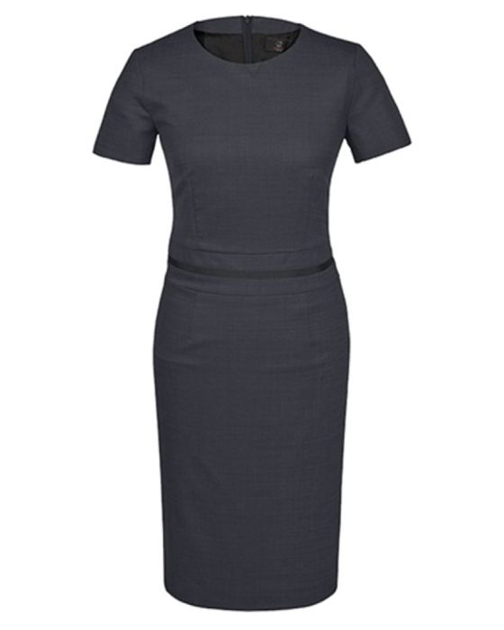 Behageligt design med stretch, rund hals og taljesøm. Ryglængde på 97 cm i str. 39 og skjult lynlås giver et rent udtryk.